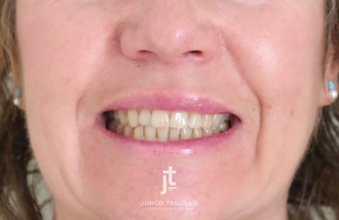 En pocas semanas, los cambios fueron claramente visibles. La sonrisa de la paciente se volvió más blanca y luminosa, devolviéndole la seguridad al sonreír.